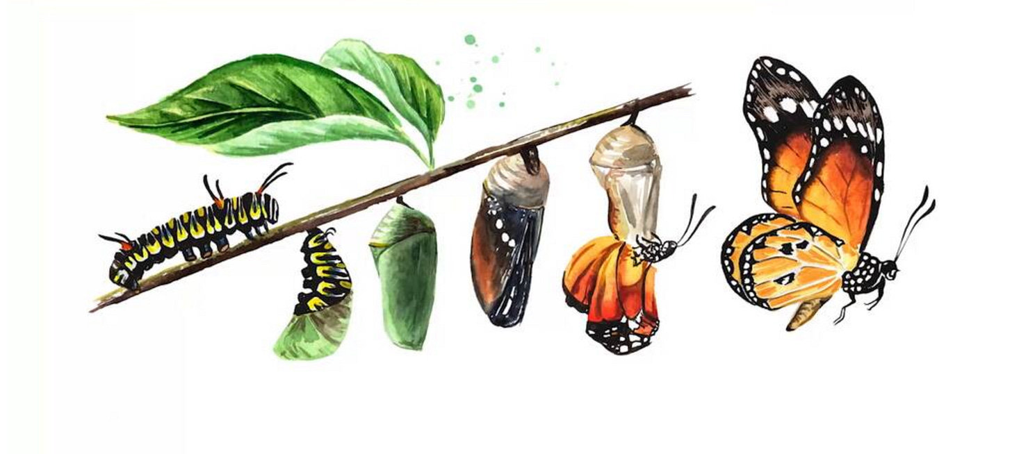 Becoming a child of God is both an instantaneous life birthed at Salvation, and also a lifelong process of change. It’s very much like a butterfly. I know this example is cliche, but it’s a simple picture of the struggles we will go through to become what we will be.